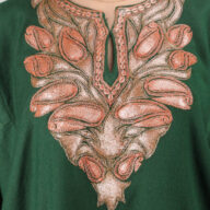 The phiran is unisex in design, though slight distinctions exist. Men’s phirans are usually plainer, while women’s versions are often adorned with intricate embroidery, particularly along the neckline, cuffs, and hem. Embroidery on the phiran is often done in the traditional Kashmiri tilla (silver or gold thread) or aari work (hook embroidery), showcasing local artisanship and reflecting the wearer’s taste and social standing.