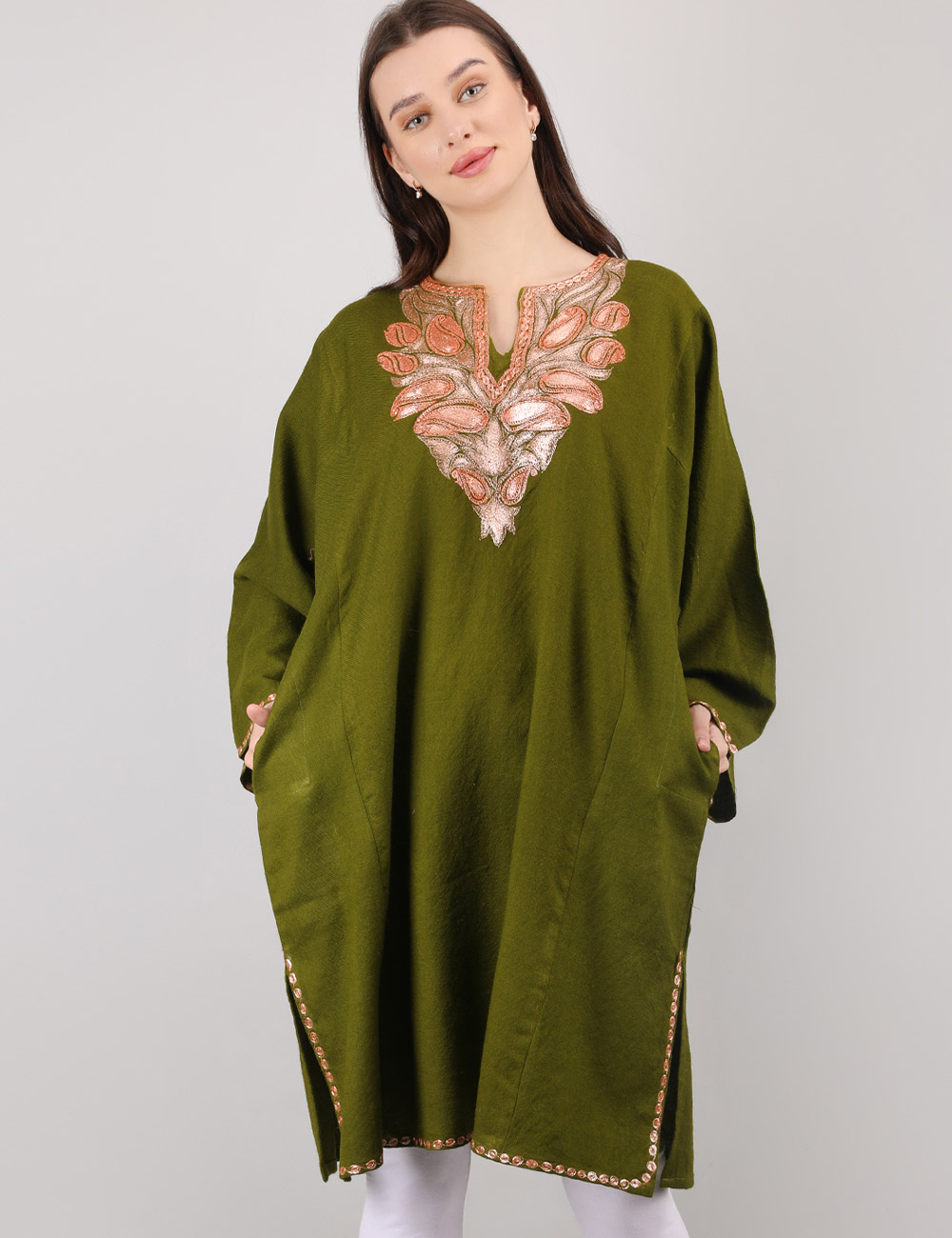 Mehndi Green Kashmiri Wool Phiran – Elegant & Timeless Winter Wear